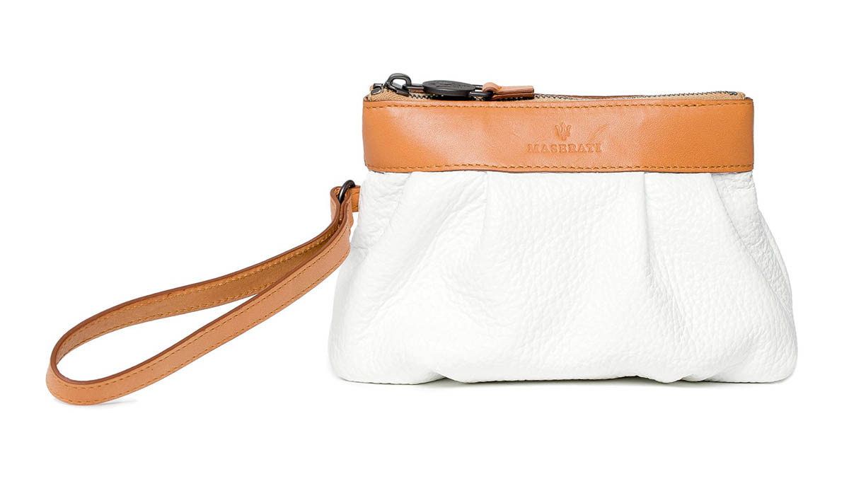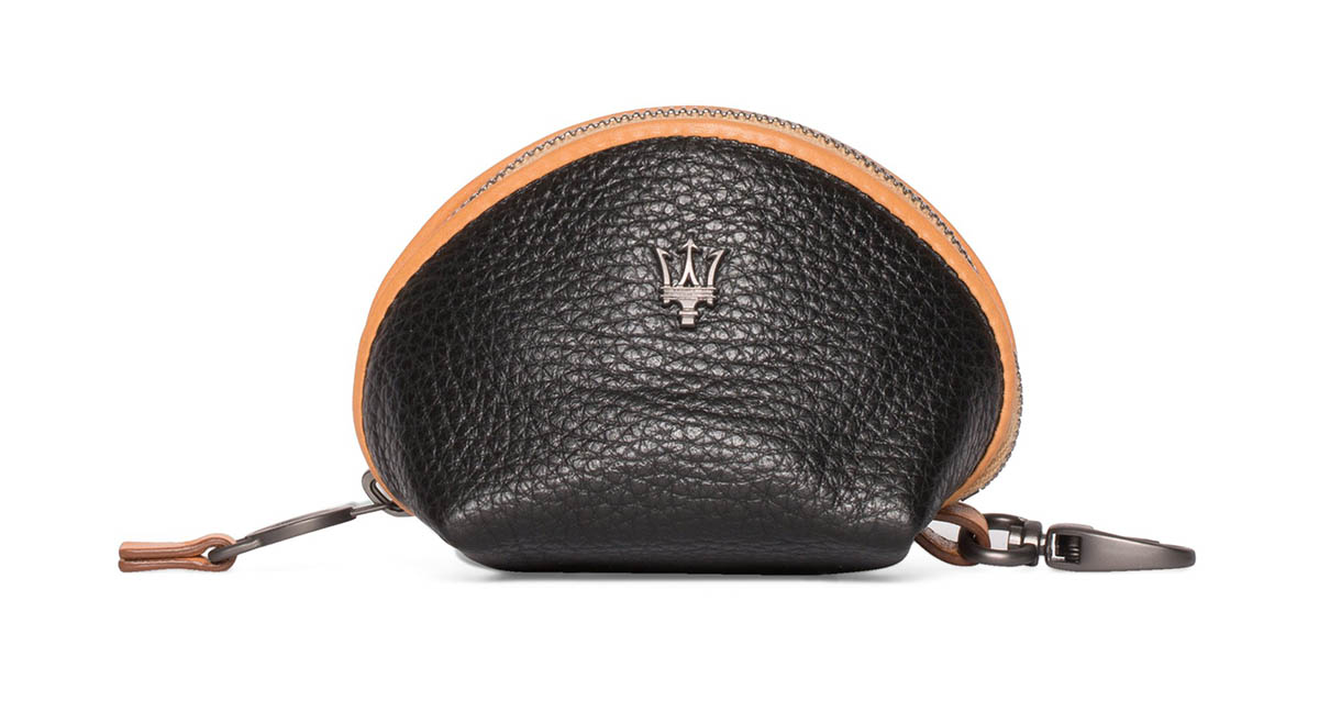 وللمفاتيح والعملات النقدية محفظة خاصة، مصممة من الجلد الايطالي وتحمل شعار مازيراتي الفاخر. المحفظة على شكل نصف دائري ومتوفرة البيض والاسود والبرتقالي والاخضر الفاتح.