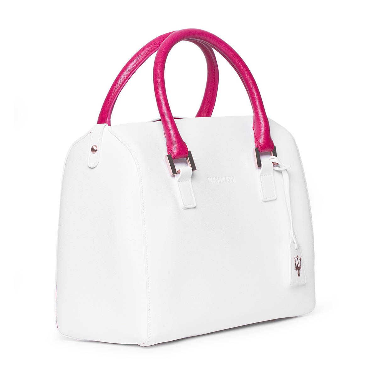 واخيرا تأتي حقيبة Bauletto handbag الجلدية الفاخرة لتجمع كل محفظة داخلها، مقدمة لسائقة مازيراتي اطلالة انيقة وراقية. وتحمل هذه الحقيبة امضاء الشركة، وهي متوفرة بألوان عدة لترضي جميع الاذواق. فماذا تنتظرين للحصول على اطلالة مازيراتي المميزة؟