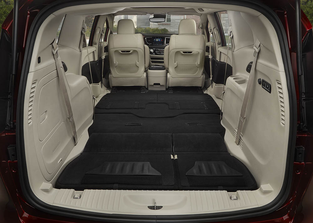 لتسهيل استخدام المقصورة الداخلية في حمل أي عدد من الأغراض ترغبين به، يمكنك طي المقاعد الداخلية في كرايسلر باسيفيكا وإدخالها في مكان مخصص في أرضية السيارة كي يصبح لديك مساحة خلفية ضخمة لتخزين كل ما ترغبين به، ونعني كل ما ترغبين به.