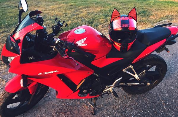 لاطلالة عصرية تليق بدراجتك النارية، يمكنك اضافة "اذني" قطة الى خوذتك من لون الدراجة نفسه. اعكسي الالوان انما احرصي على ان تكون متماشية مع بعضها البعض، وانطلقي!