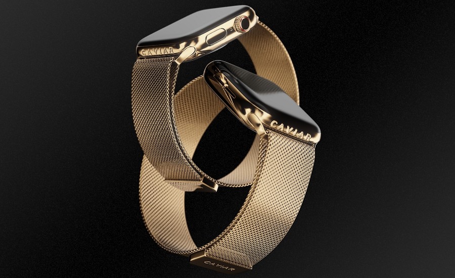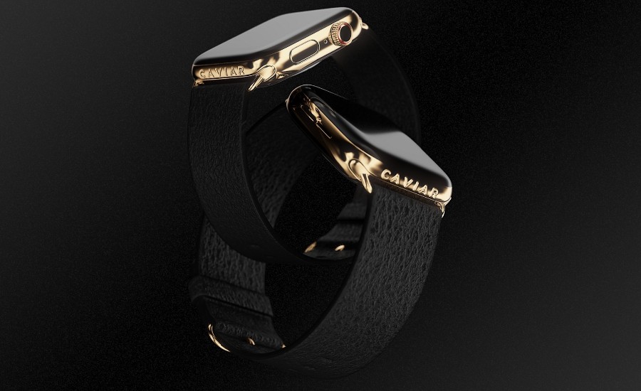 تقدم كافيار 3 نسخ من الساعة مستوحاة من الكافيار الأسود، الأحمر والأبيض وهي مزينة بالأحجار الكريمة والياقوت والألماس، حيث تدعى أجهزة آبل القابلة للارتداء "Gourmet" وإجمالاً مضاف لكل واحدة منها 633 حجارة كريمة وسوار ذهبي بقُطر ملليمتر ونصف.