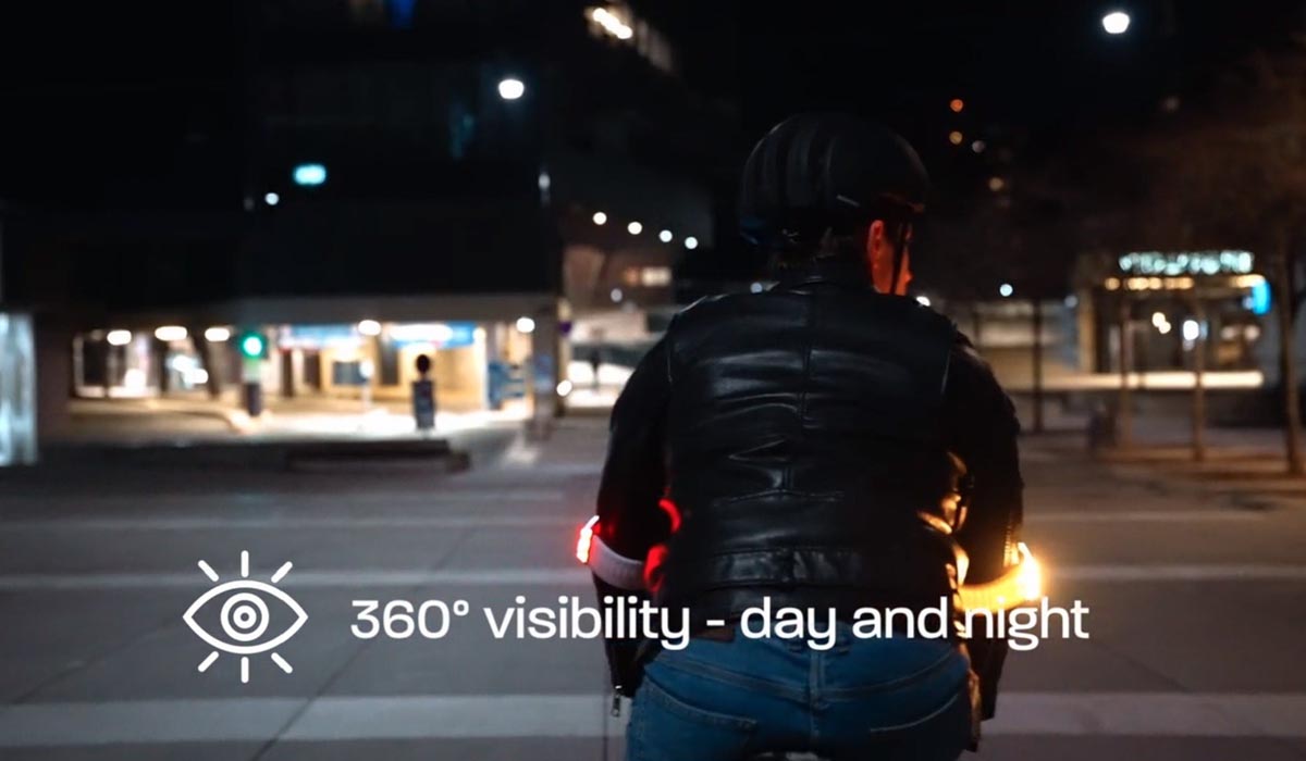 يمكنك تنشيط إشارات الانعطاف ببساطة عن طريق رفع كوعك في اتجاه الدوران. سوف يومض شريط الذراع بعد ذلك للإشارة إلى دورك لمستخدمي الطريق الآخرين. لا مزيد من التخلي عن المقود والتضحية بالتحكم في رحلتك.