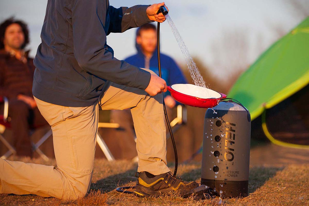 نجد في الكثير من الاوقات صعوبة في إيجاد مياه ساخنة في مناطق التخييم، ولذلك تم ابتكار رشاش المياه الساخنة Helio Pressure Shower الذي يعتمد على الألواح الشمسية من اجل تسخين المياه.