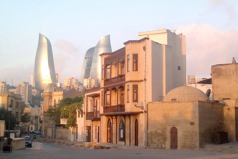 تقع باكو عاصمة أذربيجان على طول بحر قزوين وهي تتميز بثلاثة أبراج تم بناؤها لتشبه النار فتعطي بريقًا برونزيًا للمدينة خلال الليل. تحتضن المدينة الحديثة متحف الفن المعاصر الذي يضم أكثر من 900 عمل فني، كما ويمكن تجربة المنتجات المحلية من خلال زيارة إلى سوق يشتهر بالجبن والتوابل أو يمكنك تناول الكباب.