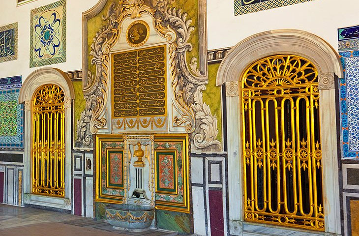بُني من قبل محمد الفاتح في القرن الخامس عشر يتمتع بساحات فناء فخمة تصطف على جانبيها أعمال قرميدية مرسومة باليد، وكلها محاطة بجدران وأبراج متناغمة. تعرض المحكمة الثالثة مجموعة رائعة من آثار النبي محمد في غرفة حفظ السلام المقدسة، وهي موطن الخزانة الإمبراطورية، حيث يتم استقبالك بكمية من القطع الذهبية المتألقة والأحجار الكريمة.