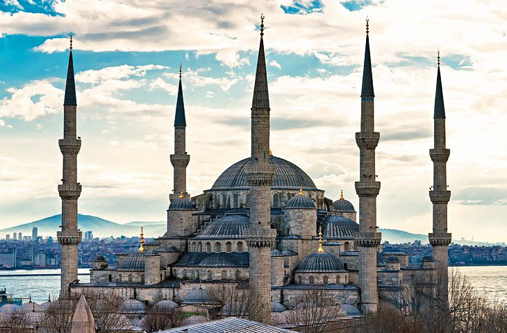 كانت هدية السلطان أحمد الأول المعمارية العظيمة إلى عاصمته هذا المسجد الجميل، المعروف باسم المسجد الأزرق اليوم. بني المسجد بين عامي 1609 و 1616 وأحدث ضجة في جميع أنحاء العالم الإسلامي عندما تم الانتهاء منه حيث كان لديه ستة مآذن. يحصل المسجد على لقبه من زخارفه الداخلية لعشرات الآلاف من بلاط إزنيق. إن التأثير المكاني واللون الداخلي بأكمله يجعل المسجد أحد أروع إنجازات العمارة العثمانية.