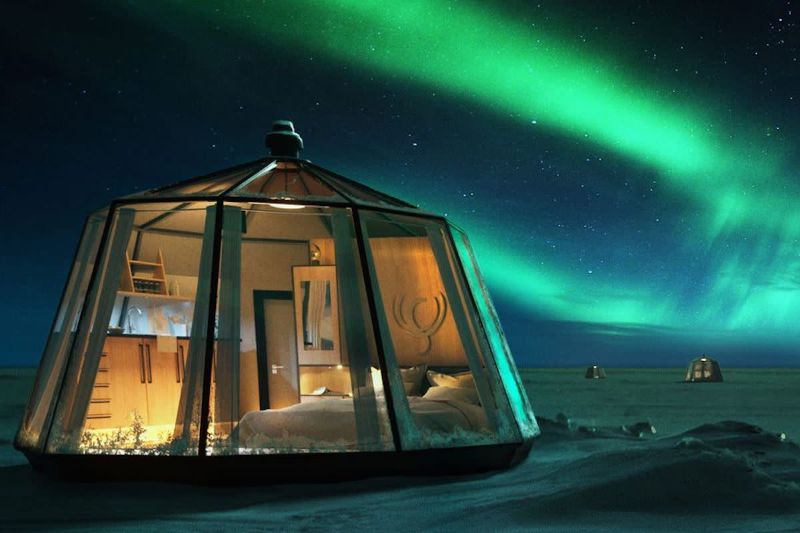 لشهر واحد فقط سيفتتح فندق North Pole Igloos المنبثق في أقصى نقطة من العالم لتتاح لك فرصة قضاء ليلة في غرفة زجاجية صغيرة وسط الثلج وأسفل النجوم.