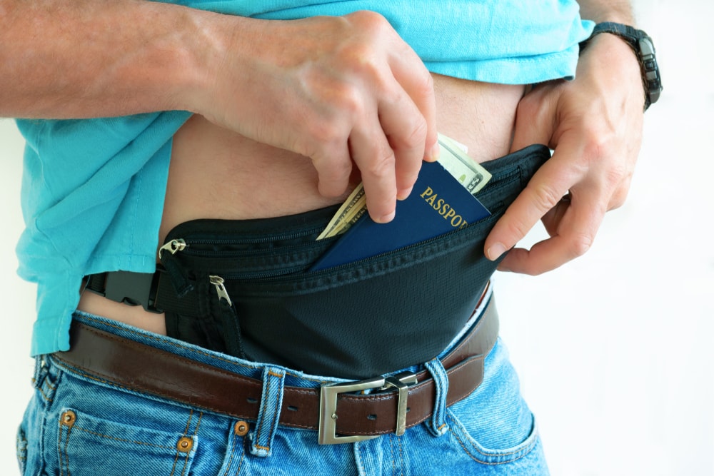 ضع اوراقك الشخصية وبطاقات ائتمانك والمبلغ المالي الذي انت بحاجة اليه في محفظة يمكن ارتداؤها حول الخصر وتحت الملابس، فبهذه الطريقة ستحمي نفسك من مشكلتين قد يتعرض لهما اي مسافر: النشل او اضاعة امواله.