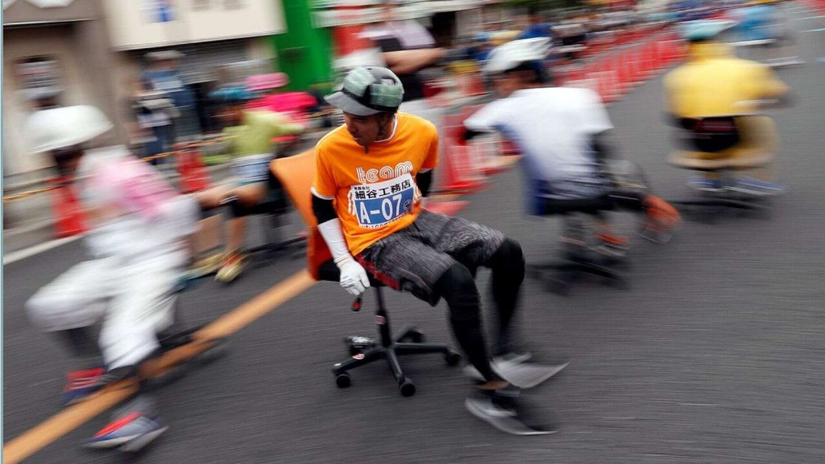 منافسة ليست ككل المنافسات، هي منافسة "إيسو Isu" اليابانية لأثاث المكاتب لسباق أفضل كرسي مكتب على الطراز القديم، التي يشارك فيها ثلاثة لاعبين عن كل فريق بمدينة "هانيو" ويتسابقون على مسافة 200 متر على مدار ساعتين.