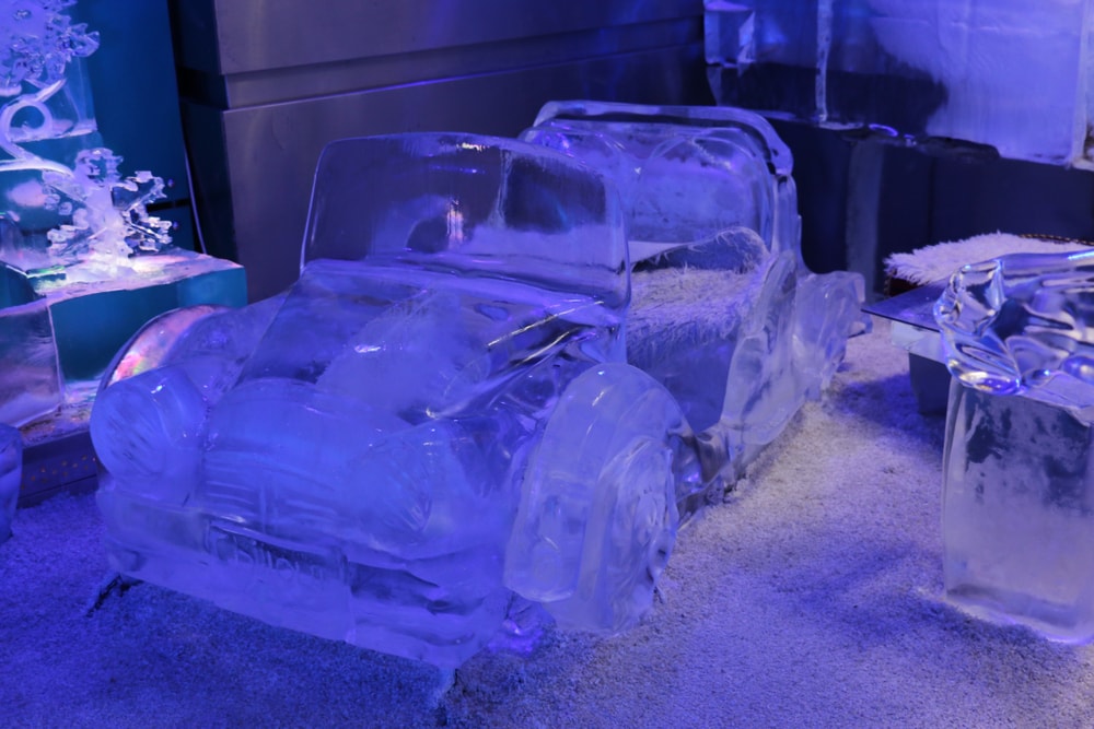 استمتع بالسوشي او السندويشات اللذيذة حول مائدة من الجليد، وبعدها استمتع بكوز ايس كريم. واستعد لشرب المياه من كوب مصنوع من الثلج ايضا.