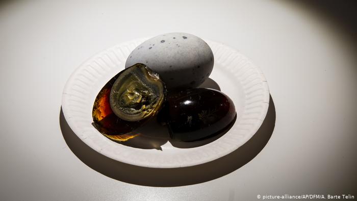 بيض القرن الصيني: أغمض عينيك وأنت تتذوق هذا الطبق الغريب الذي يتم تحضيره عبر نقع البيض في وعاء يحتوي على الشاي الأسود والملح والجير والرماد الخشبي لمدة زمنية تتراوح بين السبعة أسابيع إلى خمسة أشهر!