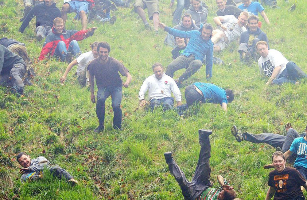 ومن بين المهرجانات الغريبة التي تجري في العالم ذالك المسمى بـ "ذي كوبر هيل شيز رولينج" هو يجري سنوياً في فصل الربيع على تلة "هيل كوبر" في مدينة كوتسولدز الواقعة بإنجلترا.