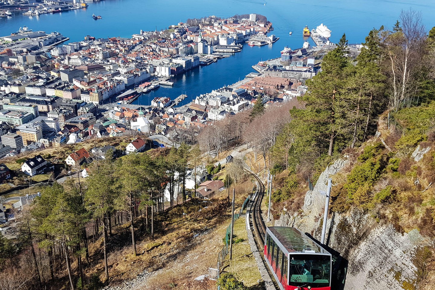 تُسمى بمنطقة الجبال السبعة ومن الطبيعي أن تزور أحدها، الجبل الأقرب هو Fløyen ، وهو قريب من وسط المدينة.يمكنك الوصول الى القمة بواسطة القطار الجبلي المائل خلال 8 دقائق فقط. عند وصولك ستتفرج على أجمل المناظر المطلة على مدينة بيرجين.