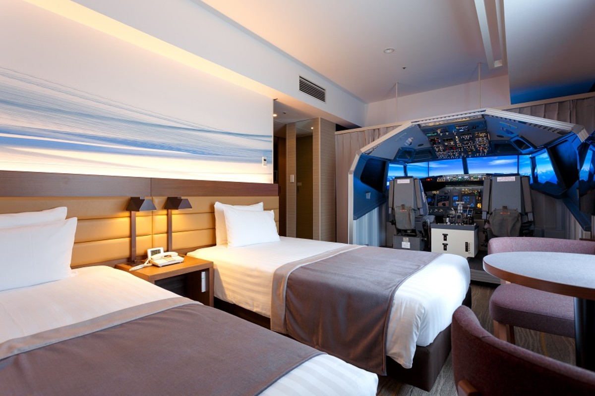 يقدم الفندق القريب من المطار، غرفة Superior Cockpit وبها جهاز محاكاة الطيران يمكن للضيوف حجزها لمدة 90 دقيقة. توفر هذه الغرفة متعة الشعور بأنك على متن طائرة متجهة من هانيدا إلى مطار إيتامي في أوساكا، حيث يوجد بالغرفة قمرة قيادة كاملة من طراز بوينج 737-800 بجوار السرير مباشرة، حتى تتمكن من ممارسة مهارات الطيران الخاصة بك.