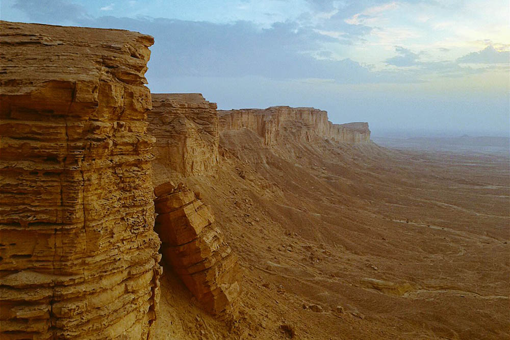 هو عبارة عن منحدر صخري يطل على أحد الأودية، وقد تشعر هذه الاطلالة مرتادي المنحدر بالخوف اذا كانوا يخافون المرتفعات. كما أنها تتطلب الكثير من المشي والتسلق. ولكن المنحدر الذي يطلق عليه "حافة العالم" ماهو إلا نهاية سلسلة جبال طويق التي تمتد على مسافة 700 كلم.
