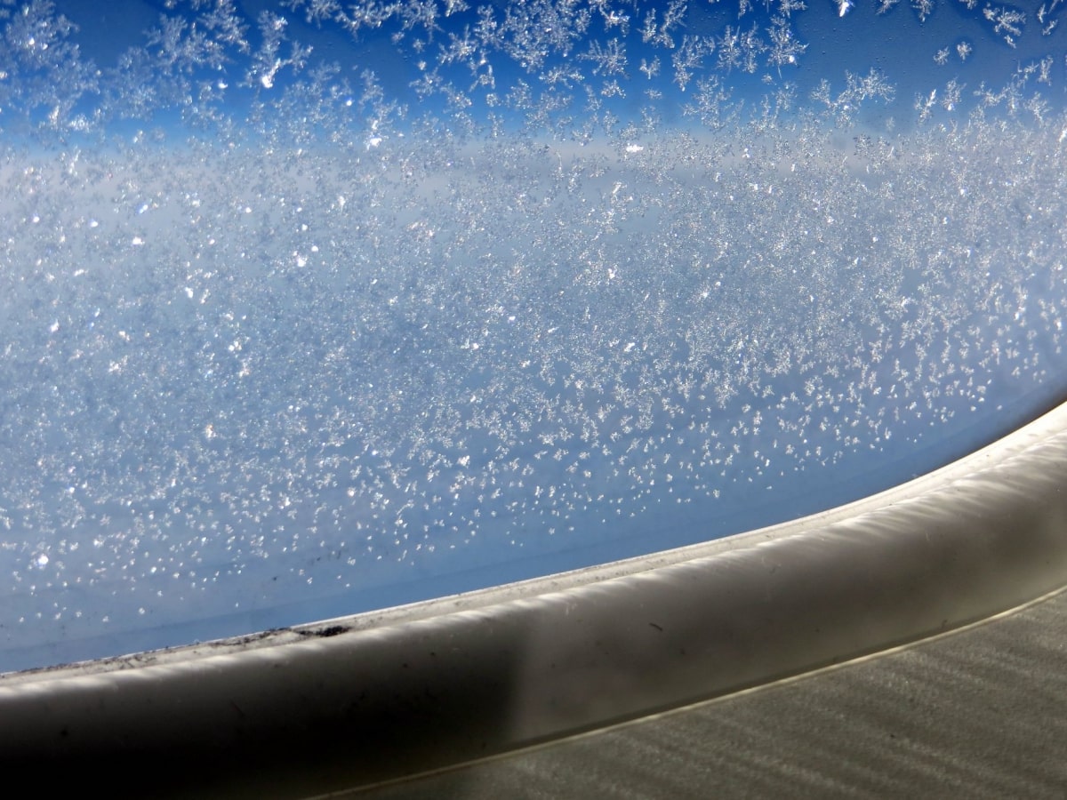 لكن المشكلة تكمن ببطئ محرك الطائرة أثناء الاستعداد للهبوط، هذا يعني أن المحركات لا تولِّد القدر نفسه من الحرارة التي تولدها عند الإقلاع، ما يزيد من فرصة تراكم الجليد على الطائرة وتجعل الهبوط السلس أمرًا صعبًا. وهذا يبدو واضحاً من الجليد العالق على النوافذ.
