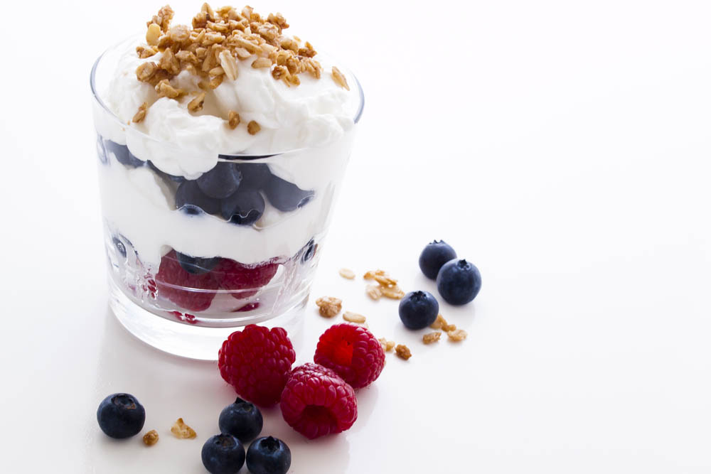 اللبن الزبادي غني بالبروتينات ويشعرك بالشبع لوقت طويل. كما يمكنك إضافة المكسرات أو الفواكه المجففة إليه.