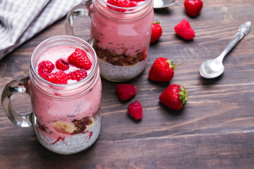بذور الشيا هي مصدر جيّد للبروتين والدهون الصحيّة، كل ما عليكَ فعله هو دمج نصف كوب فراولة، نصف كوب من التوت وملعقة صغيرة من بذور الشيا في الخلاط. أضف إاليها أوراق النعنع وملعقة عسل صغيرة.