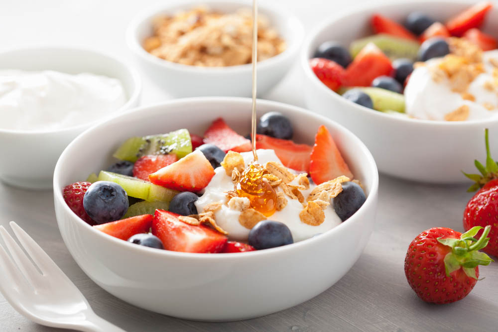 الفاكهة الطازجة مثل الأناناس والفراولة، الشوفان (لما له من فوائد في حرق الدهون)، البيض المسلوق، الرز الأسمر، الخضار المطبوخة على البخار.