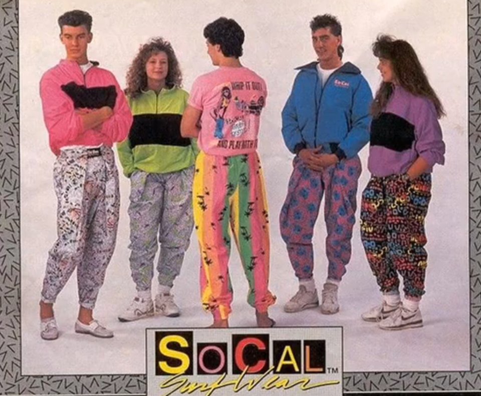 كانت رمزاً للياقة البدنية في وقتها، فكلما أردت أن تتظاهر أنك رياضي كان عليك ارتدائها، وارتداها نجوم عالميين ومن بينهم النجم ويل سميث، ولكن للأسف هذه البدلة لم تكن ذات مظهراً أنيقاً، على العكس، فكانت تعطي من يرتديها مظهراً غبياً.