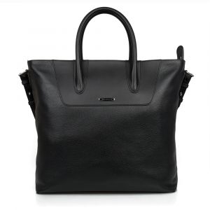 حقيبة Ultimate Leather Tote Bag سوداء مصنوعة من الجلد الطبيعي، مع ثلاثة جيوب داخلية وحمّالة كتف قابلة للإزالة. تصميمها أنيق جدا وعملي اذ بامكانها ان تتسع جميع أغراضك.