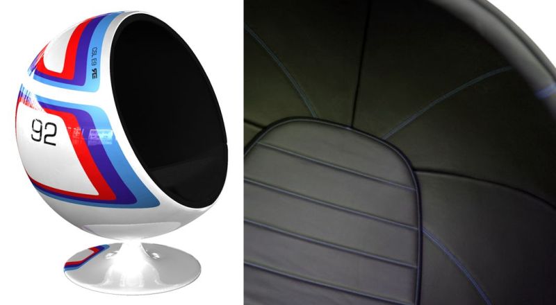 كرسي مصمم لعشاق سيارات السباق ذو تصميم مريح، يتجسد في شكل دائري جذاب والوان مستوحاة من قسم بي ام دبليو M الرياضي.