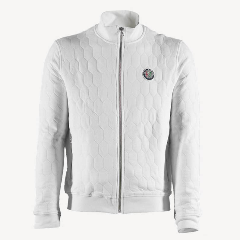 وان كنت تفكر بشراء قطعة شتوية، فمجموعة الفا روميو الجديدة تضم سترة قطنية بيضاء مناسبة للاطلالة الكاجوال، طرز عليها اسم السيارة الفاخرة لمزيد من الرقي.