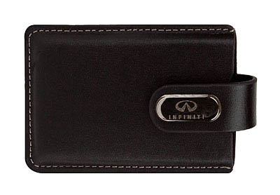 بتصميم منمق وراقي، تأتي محفظة البطاقات بمساحة تكفي حتى 20 بطاقة، صنعت المحفظة من الجلد وتظهر علامة انفينيتي المميزة على شريط الغلق الجلدي، تم تأطير المحفظة بخياطة بيضاء تبرز تصميم المحفظة وأناقتها.