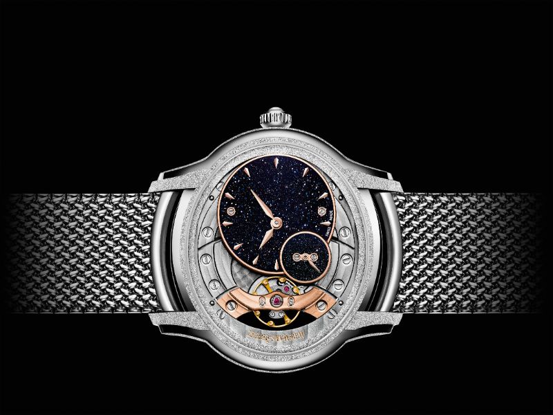 في هذه الساعة، يتم احتواء زجاج يوحي إلى الفضاء الخارجي، ضمن هيكلٍ من الذهب الأبيض عيار 18 قيراط، بجوانب طُبِّقت عليها تقنية التزيين بالطَرْق وكذلك على الطوق، والطوق الداخلي، وعلى عُروات تثبيت السوار – وتدين أوديمار بيغه بهذه التقنية إلى مُصممة المجوهرات كارولينا بوتشي.