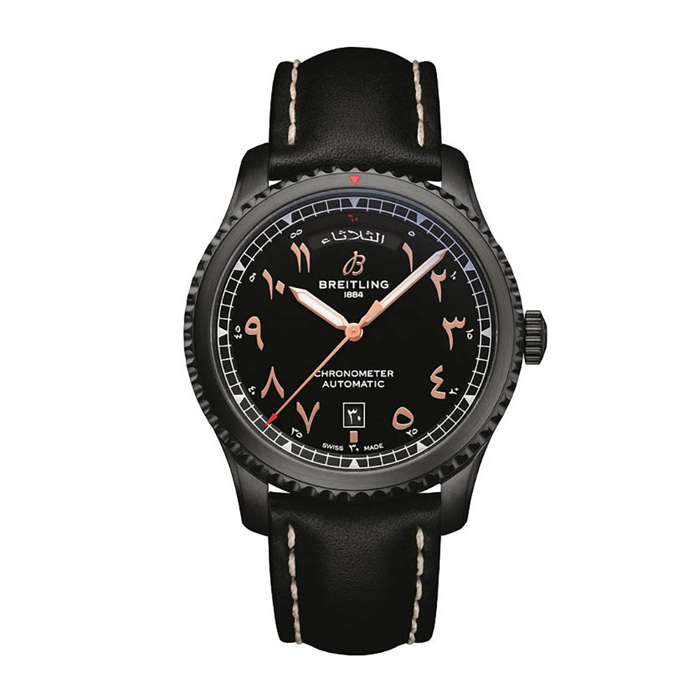 احتفالًا بعقد هذه الشراكة، أطلقت بريتلينغ ساعة أفياتر 8 اتحاد ليمتد إديشن (Aviator 8 Etihad Limited Edition) المصنوعة من الفولاذ المقاوم للصدأ باللون الأسود. ويضم هذا الإصدار المحدود، الذي شارك الاتحاد للطيران في تصميمه، 500 قطعة تتميز بأرقامها البارزة باللغة العربية.