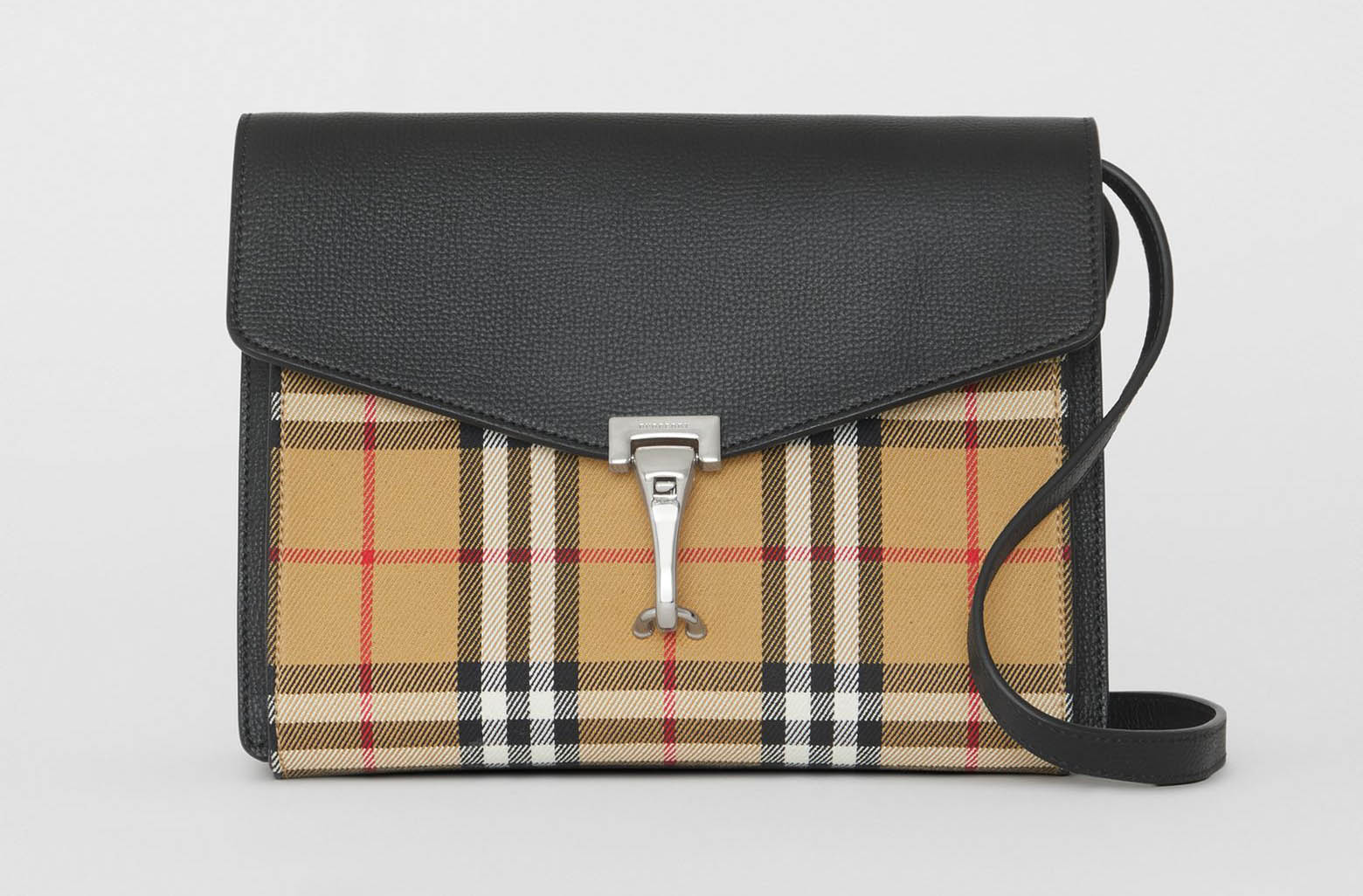 ومن منا لم يعجب بالوان بيربري الشهيرة؟ هذه الالوان ستجدها بحقيبة Vintage Check and Leather Crossbody Bag، المصممة من الجلد. تتراوح الوانها بين البيج والبني والاحمر والاسود. وهي مقلمة بالجلد الاصيل. هذه الحقيبة اصغر من سابقتها الا انها تتسع لاغراضك بكل سهوله.