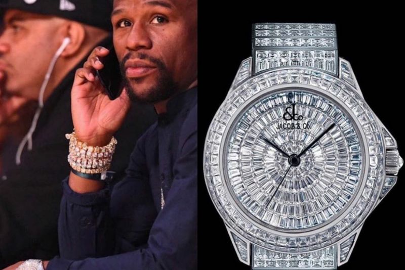 انتقل Mayweather هذ المرة إلى استخدام القطع الماسية والابتعاد عن الألوان التي اعتاد أن يرتديها "كالأحمر والوردي والأخضر"، فكانت بدايته بساعة من Jacob & Co، وهذه الساعة متاحة حالياً مقابل 384,000 دولاراً أمريكياً دون سوارها الماسي.