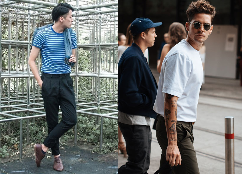 نصيحة مهمة هي ان السراويل يجب أن تكون ضيقة ولها ثنيات عند الخصر، قم بالتبديل مع تي شيرت مخطط في فصل الصيف، واحصل على أناقة لا مثيل لها.