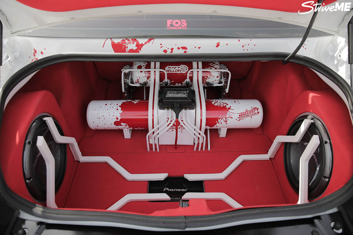 وللفت النظر اليها في المعارض، ومن اجل ان تتماشى مع التصميم العام، قام الشاب باستخدام مصابيح بتصميم Demon Eye التي تتميز بالوهج الاحمر.