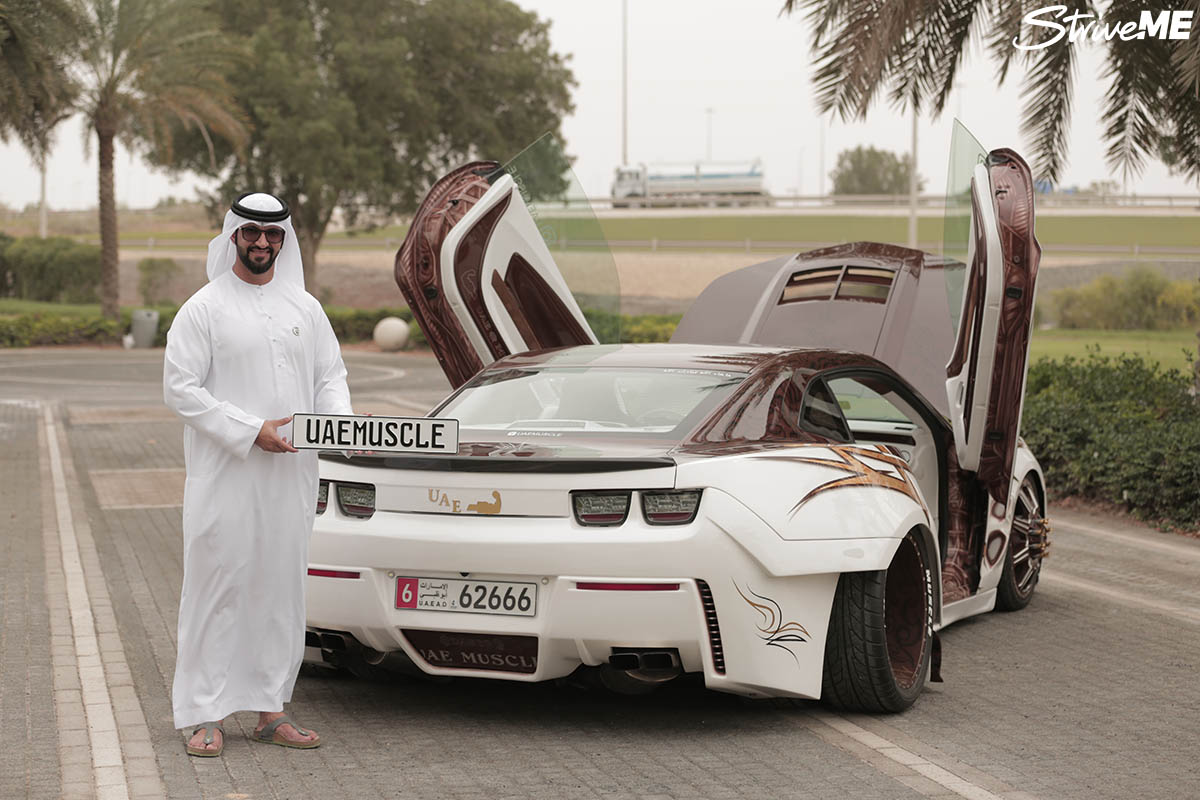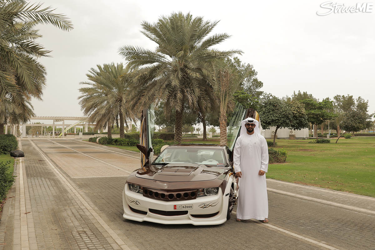 وقد قام الشاب بتعديلات كبيرة منها أنه أضاف 8 براغي بدلاً من الخمس براغي الموجودين عادة لتثبيت الإطارات، بالإضافة إلى أنه غيّر المحرك وادخل عليه سوبرتشارجر، وقد وضع على المحرك عبارة "UAE Muscle" كي يعبر عن حبه للسيارات العضلية.