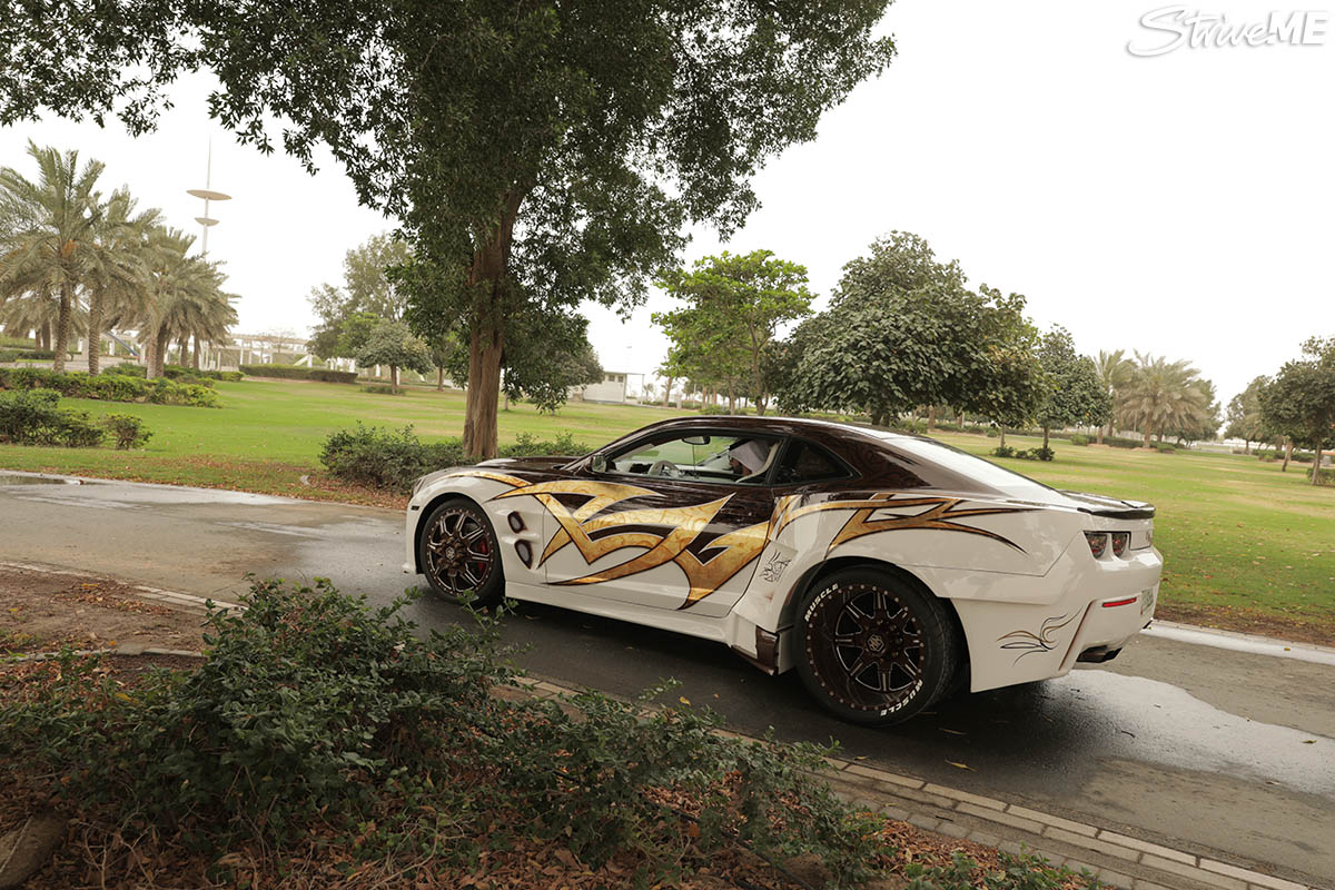 أضاف العلي على الكمارو نظام هيدروليك لخفض ورفع السيارة بالشكل الذي يحبه السائق، أما الأبواب فعدلها وأصبحت تفتح إلى الأعلى كأبواب لامبورجيني.