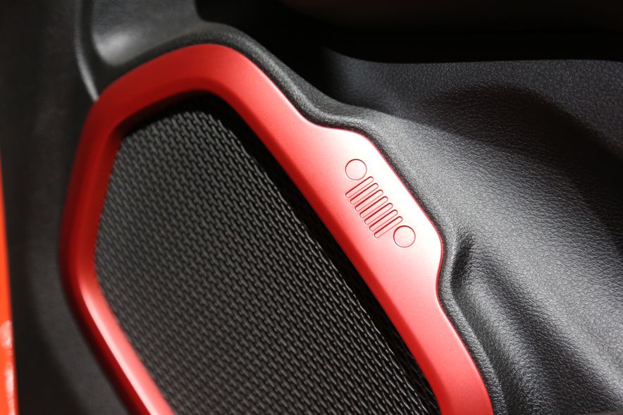 ونتابع لمح شبك جيب أيضاً في الإطار الصغير المحيط بسماعات النظام الصوتي.