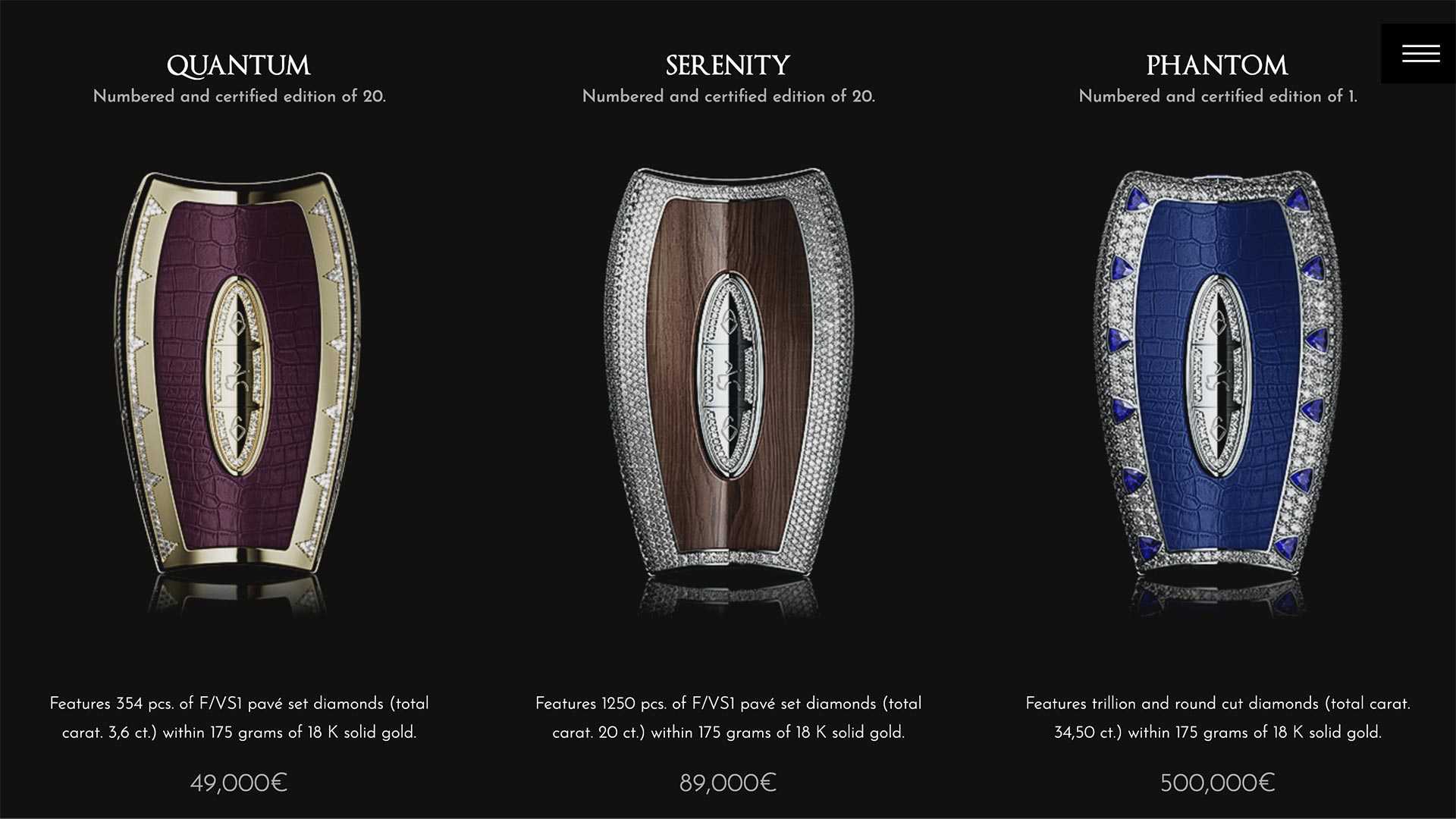 وحتى تضمن حصريته الشديدة، لن تصنع أواين سوى مفتاح شبح واحد في العالم؛ ولكن لا تقلق، الفرصة لا تزال بين يديك، حيث توفر الشركة نسخاً أخرى اقتصادية التكلفة، مثل سيرينيتي بقيمة 100 ألف دولار ويجمع بين 20 قيراط من الالماس و175 جرام من الذهب، أو كوانتوم الذي يكلف 55 ألف دولار ويجمع بين 3.6 قيراط من الالماس و175 جرام من الذهب، وكليهما متاح بـ 20 نسخة وحسب.