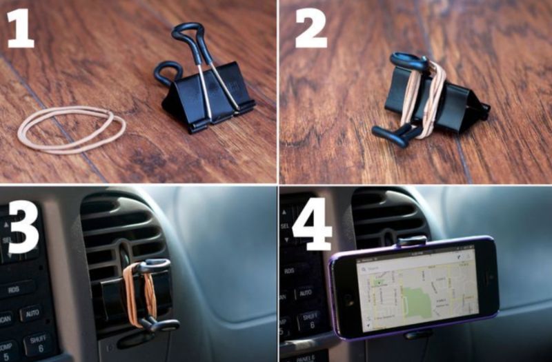 في واقع الأمر، هناك الكثير من الحلول السهلة والبسيطة للغاية لتثبيت هاتفك داخل السيارة من دون إنفاق أي أموال إضافية، ومن هذه الأفكار على سبيل المثال تثبيت الهاتف بمشبك ورق في فتحة المكيف.