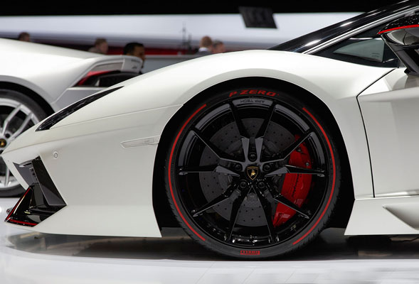 يوجد علاقة وطيدة بين لامبورجيني وشركة بيريللي للإطارات منذ وقت طويل، ولذلك تأتي كافة سيارات لامبورجيني بإطارات بيرللي، ولتكريم الشركة، أطلقت لامبورجيني نسخة خاصة من طراز افينتادور سابقاً مخصص لتلك الشركة.