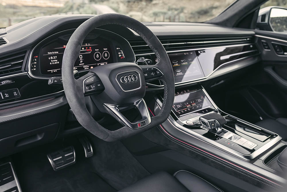 يوفر محرك V8 ثماني الأسطوانات سعة 4 ليترات في سيارة اودي RS Q8 الجديدة أداءً مذهلاً بفضل استطاعته التي تصل إلى 600 حصان وعزم الدوران الذي يبلغ 800 نيوتن متر.