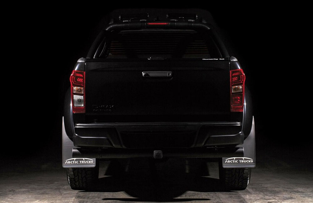 أتت قضبان السقف والدعسات الجانبية وشبك المبرد والمصد الخلفي ومصابيح الضباب والشارات كلها باللون الأسود. ولمزيد من التميز، اعتمدت الشركة المصنعة على اللون الأسود للطلاء الخارجي كي تجعل D-Max أكثر عدوانية.