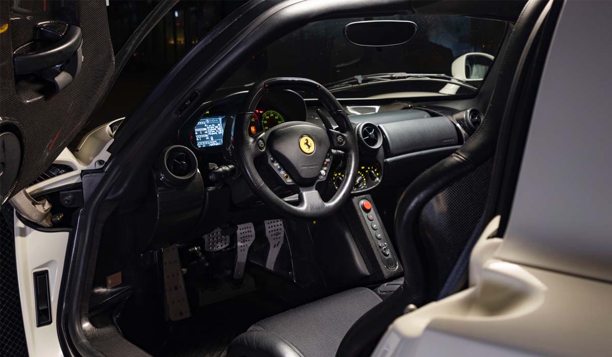 اجتذبت سيارة فيراري إنزو 2003 الجميلة والمذهلة مزايدين من جميع أنحاء العالم. إنها واحدة من 20 سيارة Extracampionario  فقط تم تسليمها بطلاء غير قياسي، وهي السيارة الوحيدة التي تحمل اللون الابيض. والشيء المميز في هذه السيارة ايضا انها لم تستهلك بحيث يظهر عداد المسافات على مسافة 9600 كم فقط، اي ما يعني ان السيارة ما زالت في حالتها الاصلية.