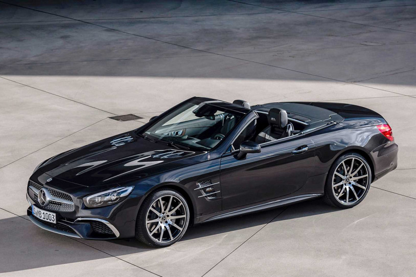 تم تجهيز طرازات Grand Edition بعجلات AMG بعشرة أضلاع قياس 19 انش للعجلات الأمامية و 20 انش للعجلات الخلفية، وهي عجلات مطلية باللون الأسود شديد اللمعان مزودة بقضبان شعاعية متقاطعة. تدل الشارتان اللتان تحملان شعار SL Grand Edition والموضوعتان على نحو أفقي على واقيات العجلات على أن السيارة هي طراز حصري.