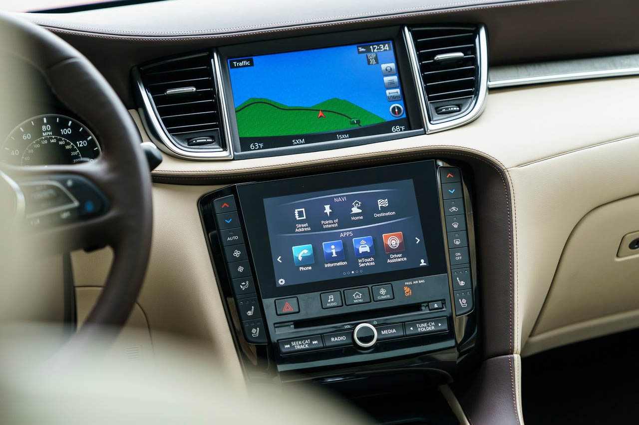 كالكثير من شركات السيارات، تسعى شركة انفينيتي لادخال تقنيات حديثة في سياراتها كدمج وتطوير شاشتين وسطيتين في آن واحد وبذلك تتجاهل بعض الانتقادات التي تطال هذه الفكرة.