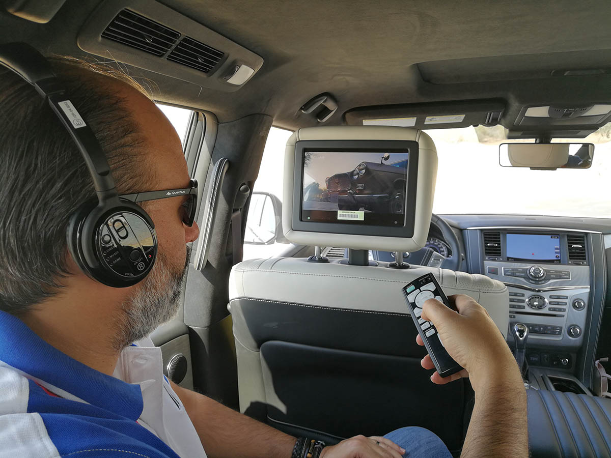 لن تشبع من الاسترخاء في انفينيتي QX80، وسترغب أن تكون راكب وليس سائق فيها، اذ أن الجلوس في المقاعد الخلفية يسمح لك بالاستمتاع بفيلمك المفضل على الشاشة أمامك.