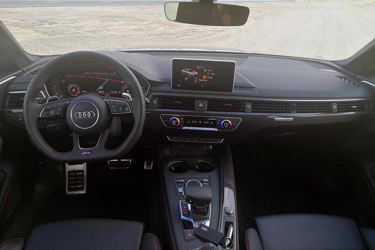 سيارة اودي RS5 سبورتباك مليئة بزوائد رائعة، من نظام ترفيهي رائع ومتطور الى أنظمة المساعدة على القيادة وغيرها، اضافة الى نظام صوتي من عالم آخر لتتمتع برحلة فخمة ومريحة الى اقصى حدود.