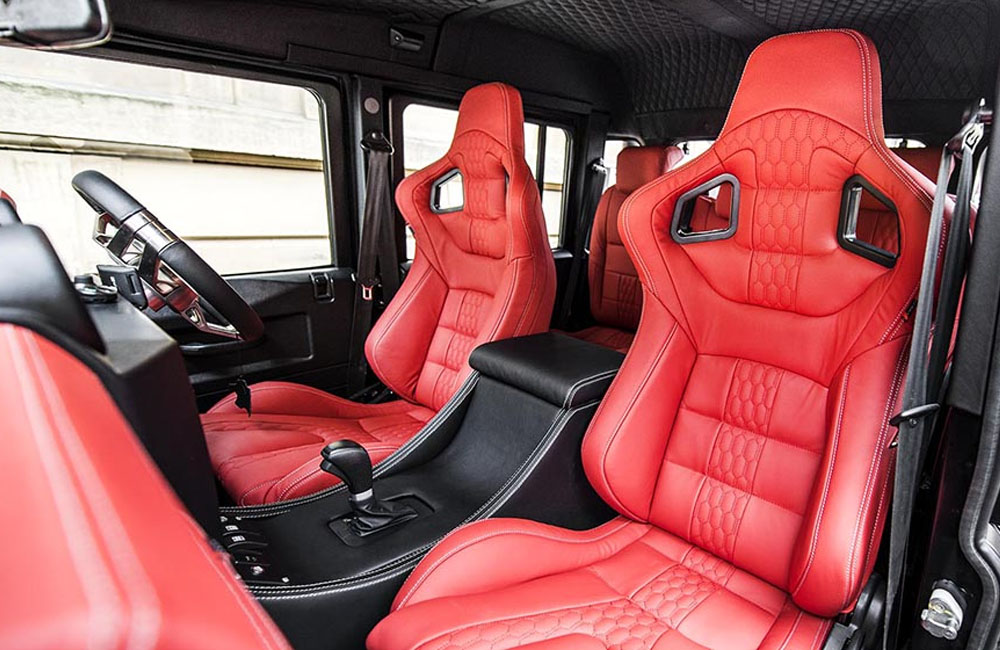 وبالانتقال إلى الداخل نستطيع أن نلاحظ بأن التعديل أتى جميلٌ جداً مع مقاعد جلدية حمراء اللون تزينها تطريزات على شكل ألماس في حين أتى السقف رائعاً ومطرزاً بطريقة فنية كلاسيكية.