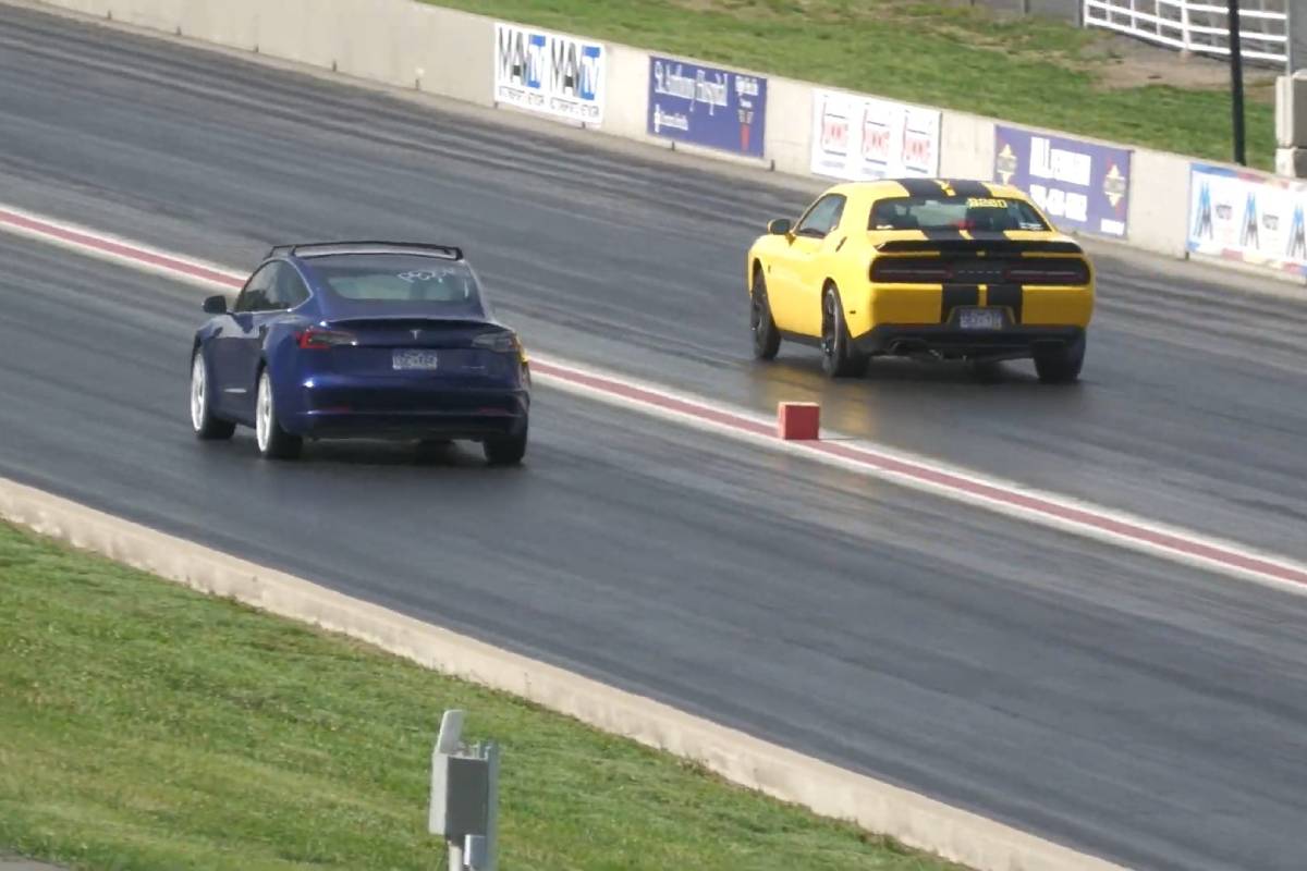 يبدو أن صاحب سيارة تسلا موديل 3، لا يريد الاستسلام، فهو يقرر أن يقوم بالتسباق من جديد، ربما لحفظ ماء الوجه. لكن هذا الأمر لم يحدث خصوصاً وان دودج تشالنجر هيلكات وبعد الانطلاقة الصاروخية التي تقوم بها، تتمكن دائماً من السير بسرعة كبيرة جداً، غير أن صاحب سيارة تسلا موديل 3 والذي لا يريد الاستسلام حاول للمرة الثالث اللحاق بهذا الوحش المدولب ولكنه لم يتمكن من التفوق عليه.