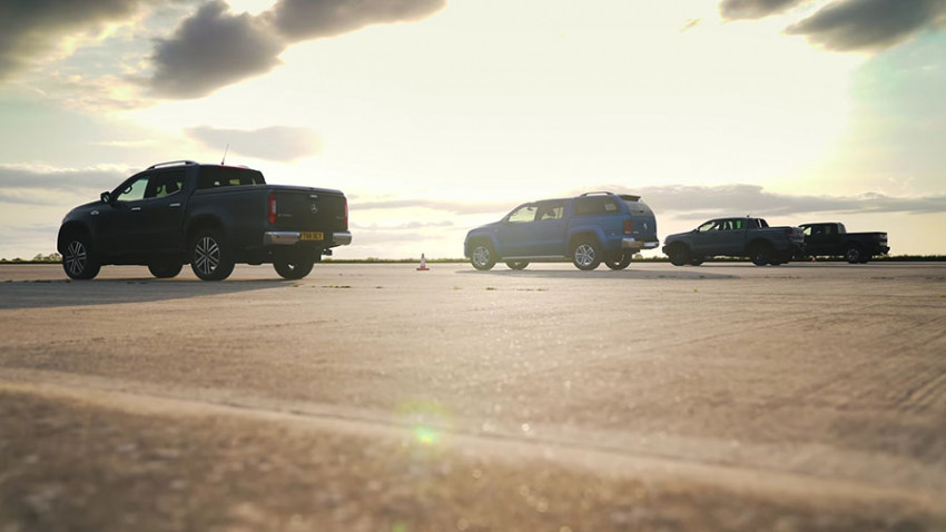 خلال الفيديو، تم اختيار فورد رينجر رابتور التي تعد النسخة عالية الأداء من بيك اب فورد رينجر، والتي تأتي بمحرك تيربو ديزل 4 سلندر 2 لتر بقوة 211 حصان مع نظام تعليق للأعمال الشاقة، حيث نجدها تواجه فورد F-150 رابتور ذات محرك V8 سعة 6.2 لتر بقوة 411 حصان، إضافة لسيارتين بيك اب من ألمانيا هما فولكس واجن اماروك بمحرك V6 تيربو ديزل بقوة 258 حصان، إضافة الى مرسيدس X-Class الفاخرة التي تأتي بمحرك V6 تيربو ديزل ينتج 258 حصان.